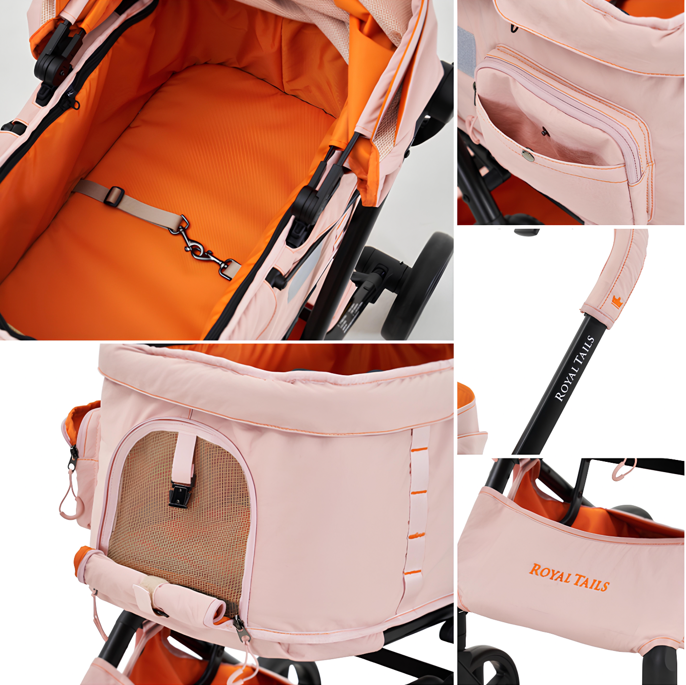 來自韓國高端頂級寵物推車品牌 Royaltails,有推車界的 ”Hermes” 之稱,豪華高格調的外觀設計搭配絲滑的推行體驗,不僅顏值在線,嚴格的品質控管,是許多韓國藝人、網紅的寵物推車首選品牌。