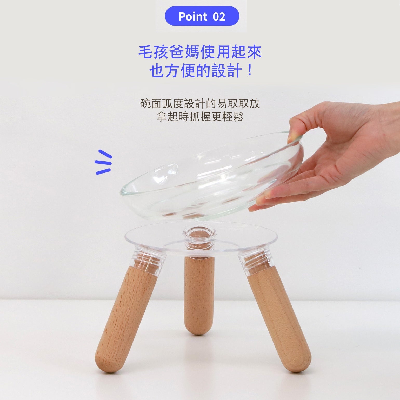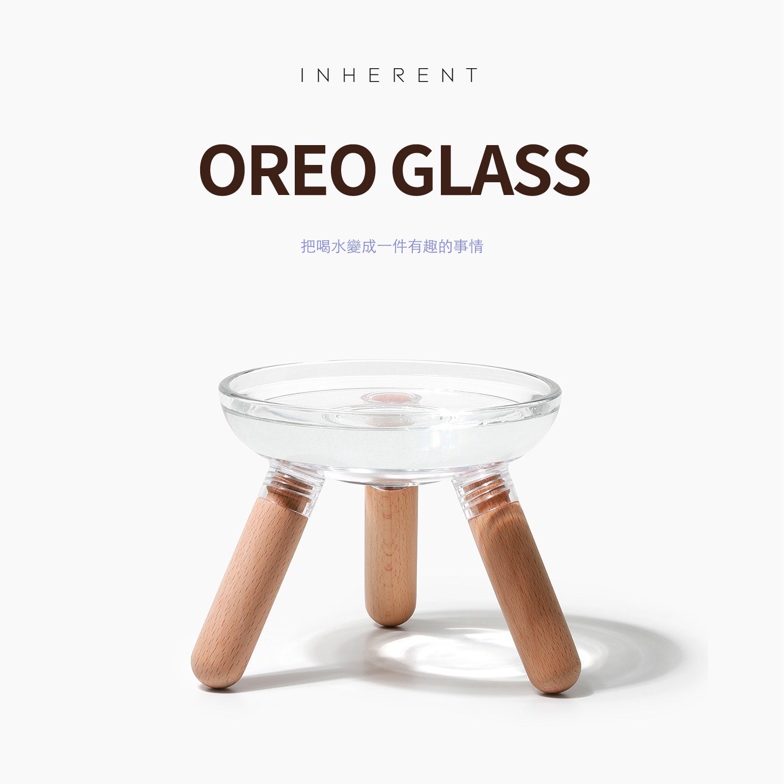 韓國 inherent 原木寵物碗架組 oreo glass|玻璃碗短腳
