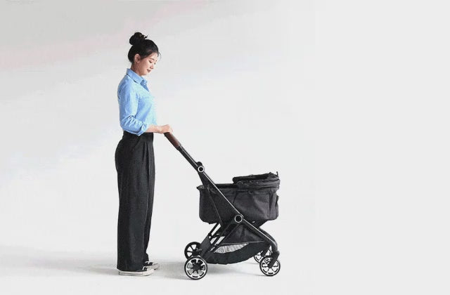 日本 Uppapets 雙開敞篷寵物推車 Nero|一秒自動收車|黎明黑